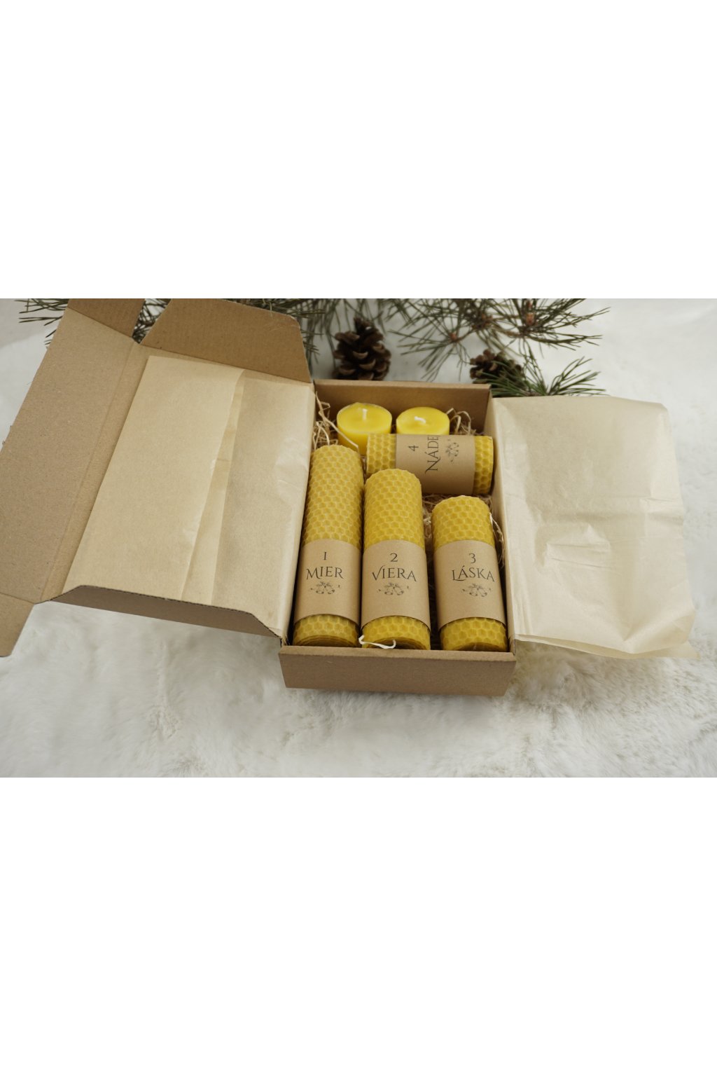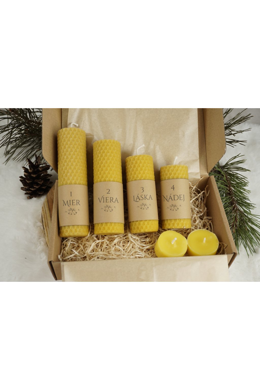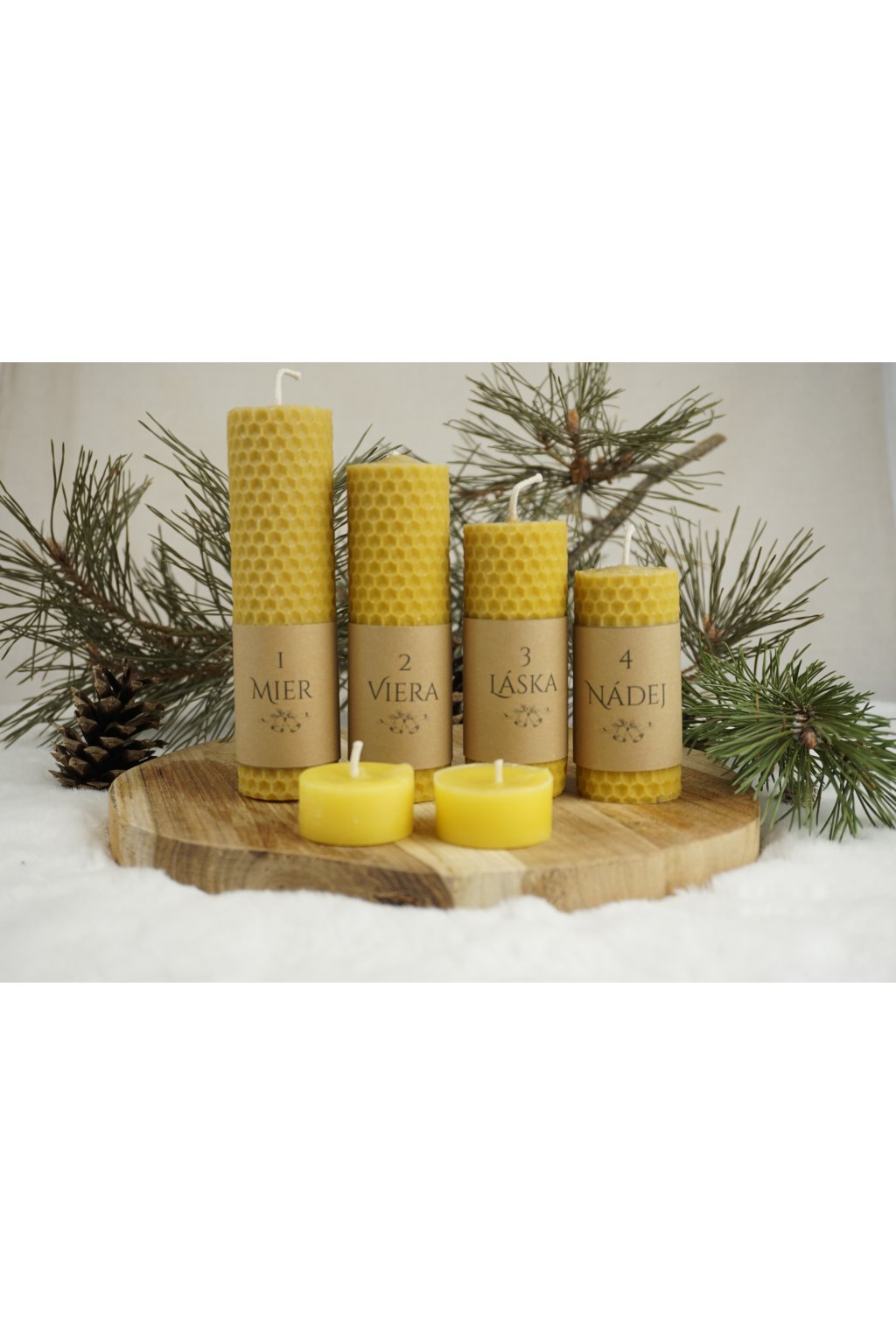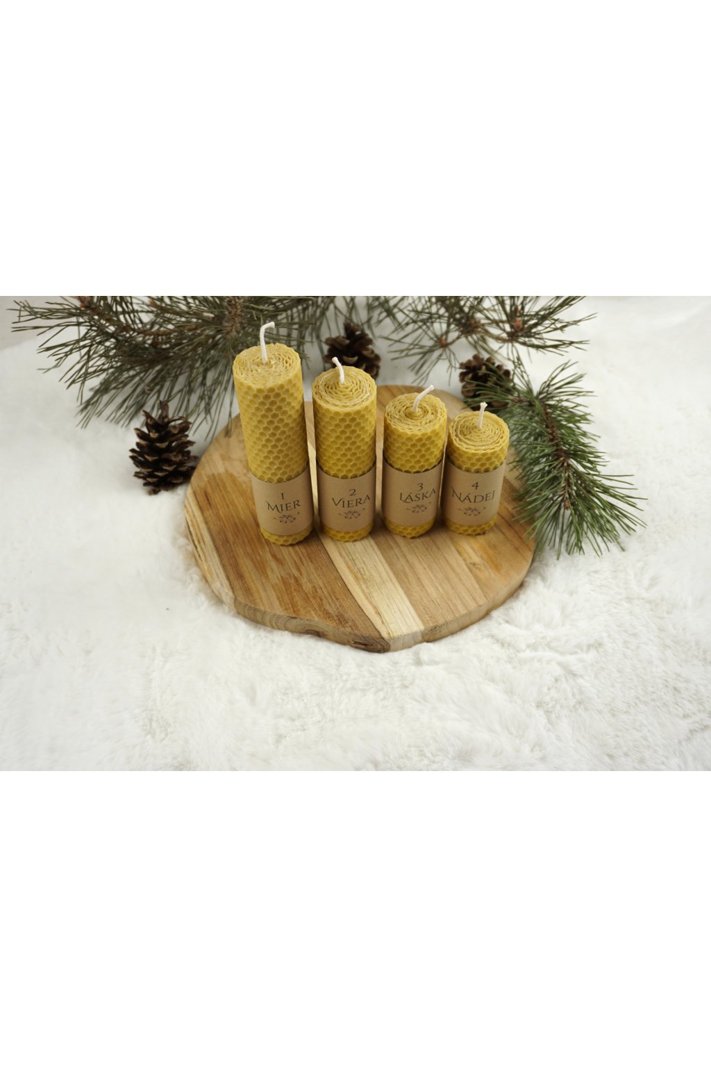 Adventná sada sviečok z včelieho vosku | Mier, Viera, Láska, Nádej | Prírodný adventný veniec
