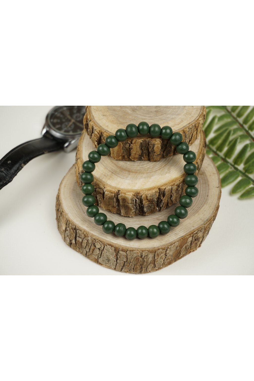 Pánsky náramok BASIC tmavozelený | Drevené korálky M/L