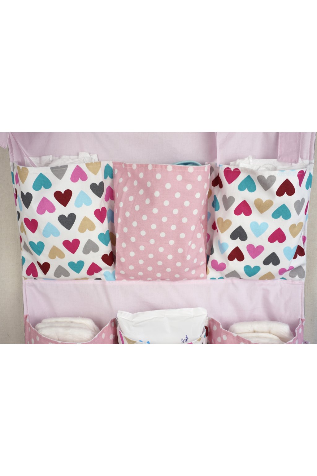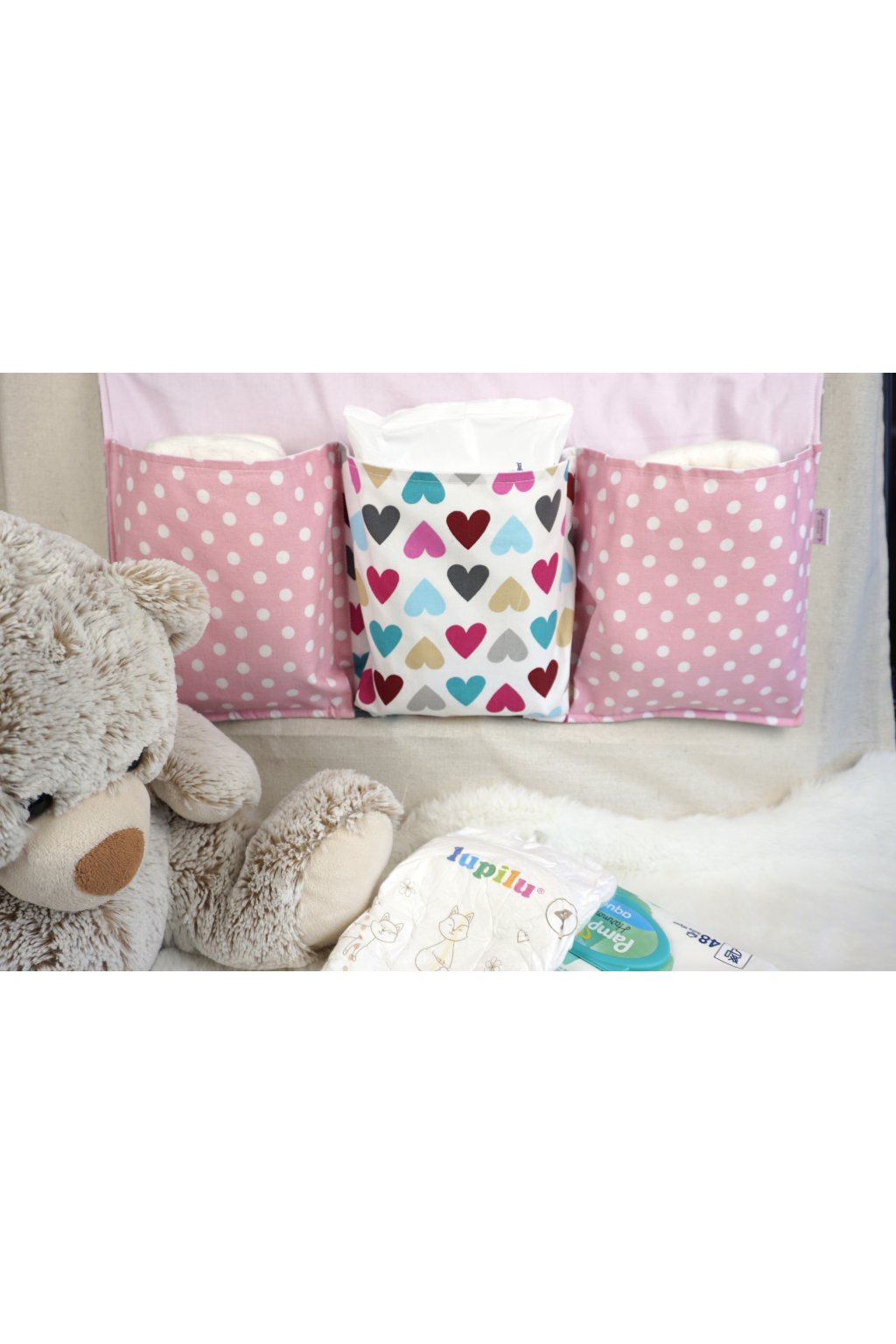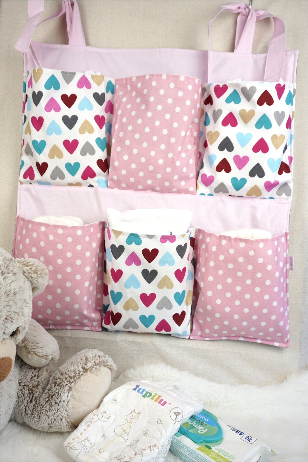 Premeňte detskú izbičku na kráľovstvo poriadku a radosti. Náš veľký závesný organizér "Plný lásky" je navrhnutý tak, aby vám priniesol nielen dokonalý systém do starostlivosti o bábätko, ale aj veselý a láskyplný dizajnový prvok, ktorý rozžiari celý priestor.